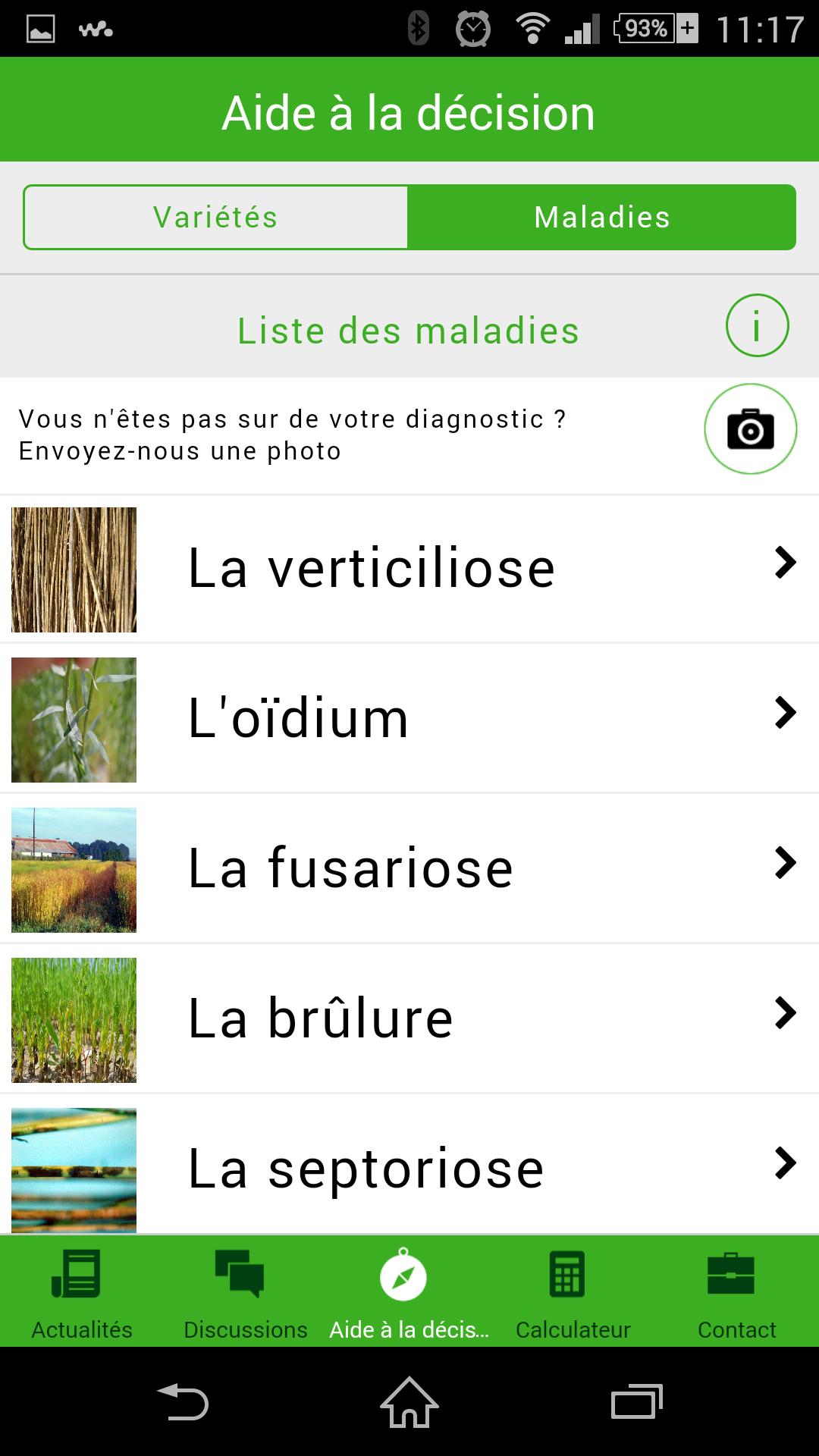 - 決策援助空間,匯集了各種選擇幫助和主要疾病的描述。用戶有可能發送照片以完善他的診斷