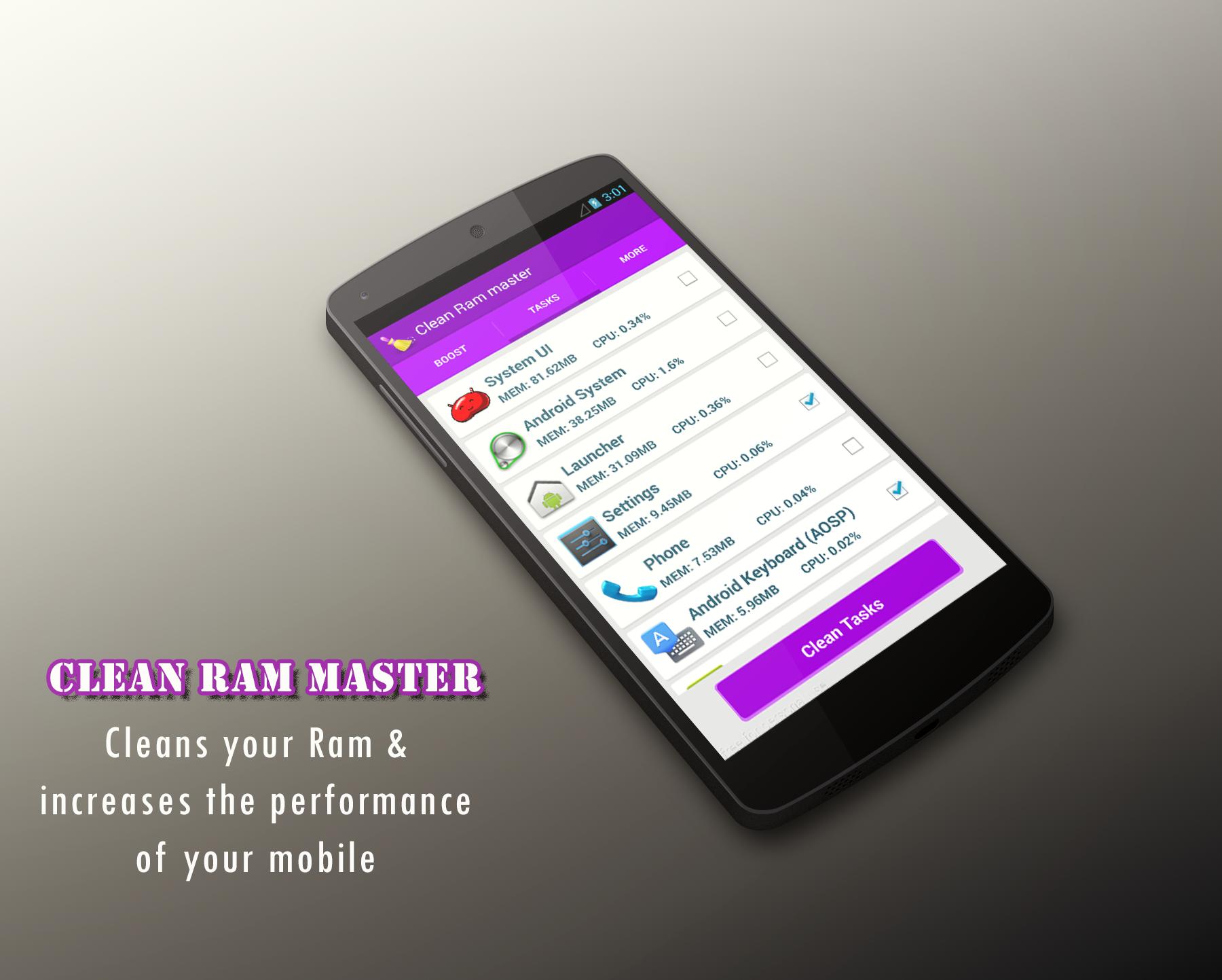 免費Clean Ram Master保護您的手機,並使其清潔,更快。