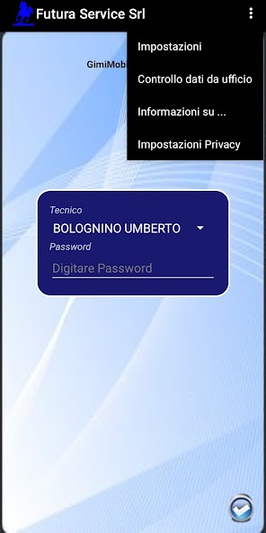 要訪問技術過程的菜單, Gimi Mobile通過選擇其名稱並使用密碼訪問來驗證。
