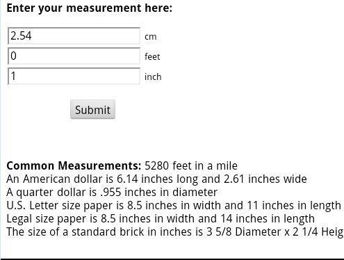 只需輸入您的值並觸摸“提交” - 您的轉換即可立即顯示。
