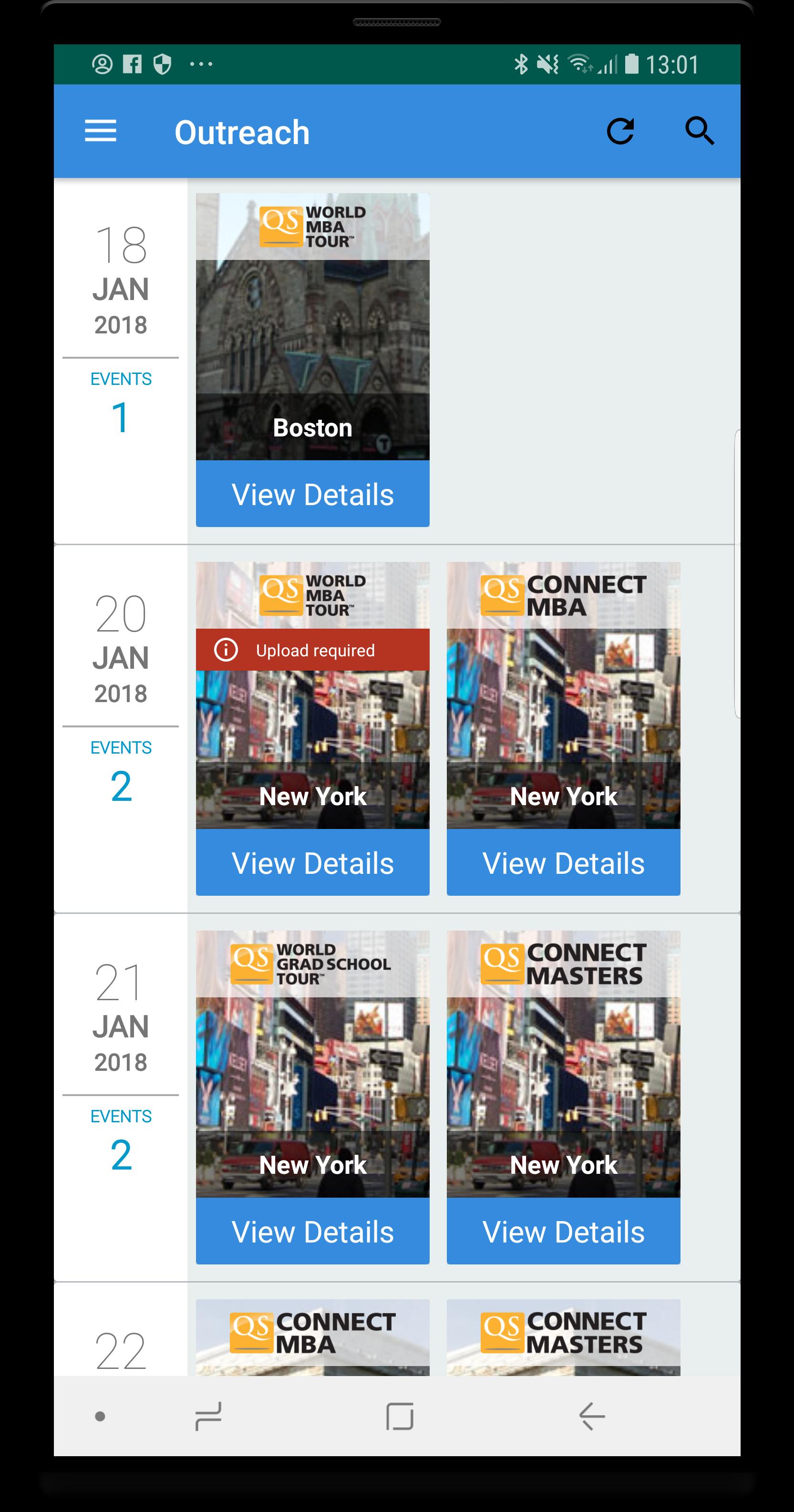 新的QS Outreach應用程序使您能夠在我們的活動中進行連接,並管理您的Connect MBA和Connect Masters參與