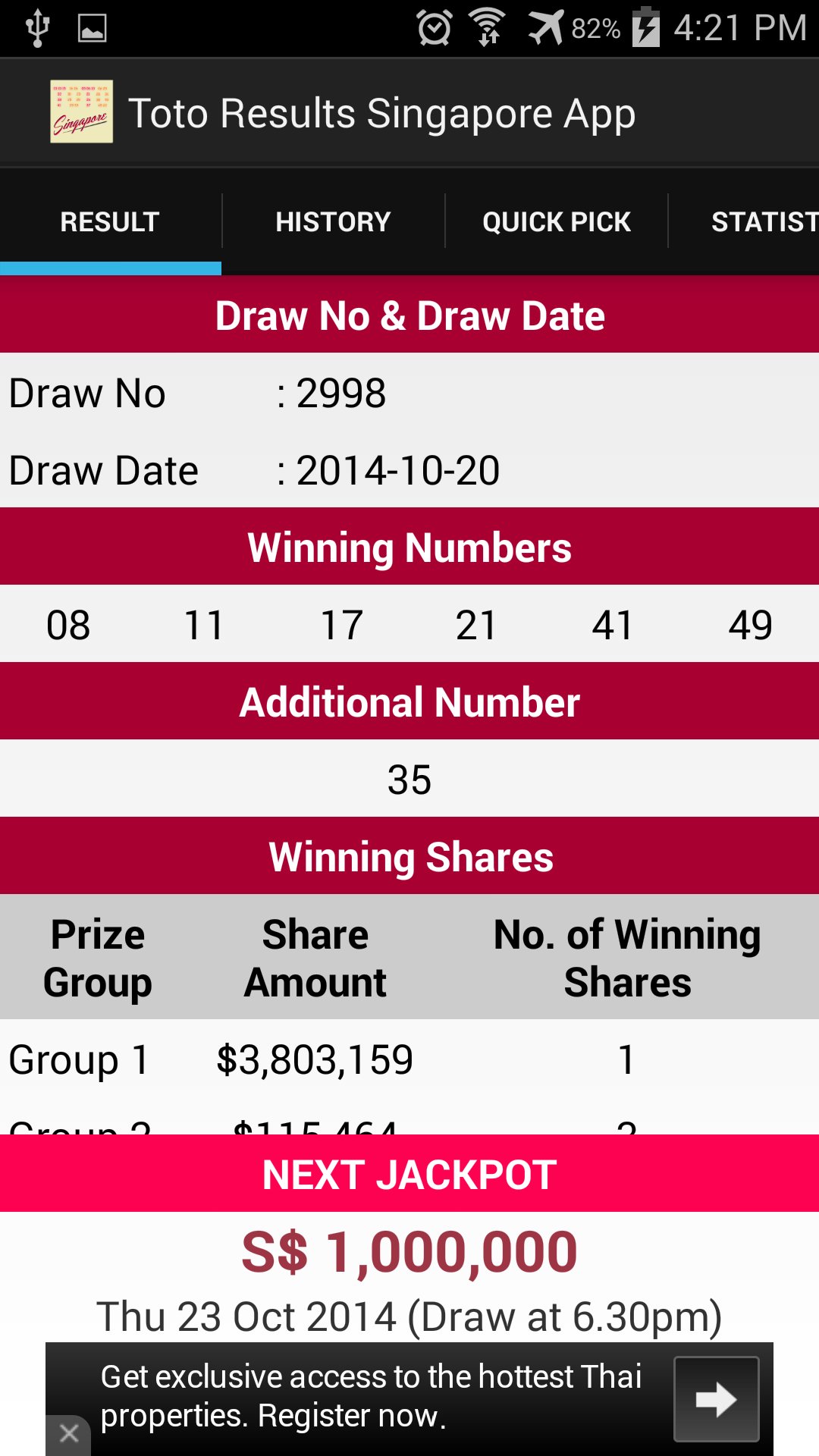 查看新加坡多多最新開獎結果、歷史記錄、快速選號系統 6 等
