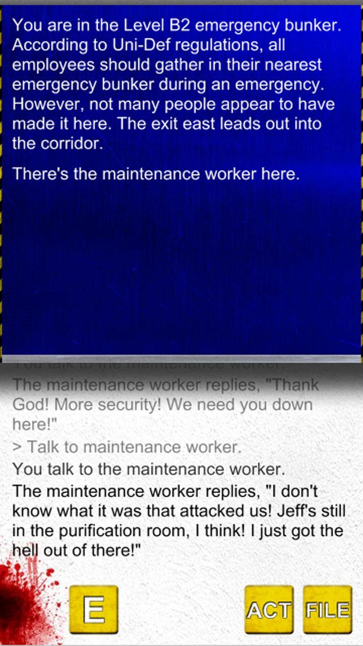 Zombie Virus Horror Adventure is part of a new generation of text adventure games that takes the hugely popular style of text adventure games (sometimes known as interactive fiction) from the 1980s and gives them a 21st Century twist for a new generation of mobile devices. Zombie Virus Horror Adventure moves away from the old "VERB NOUN" typed command entry that dates from the 1970s, and instead uses touchscreen friendly command and menu systems. Explore a new world and solve tricky puzzles.