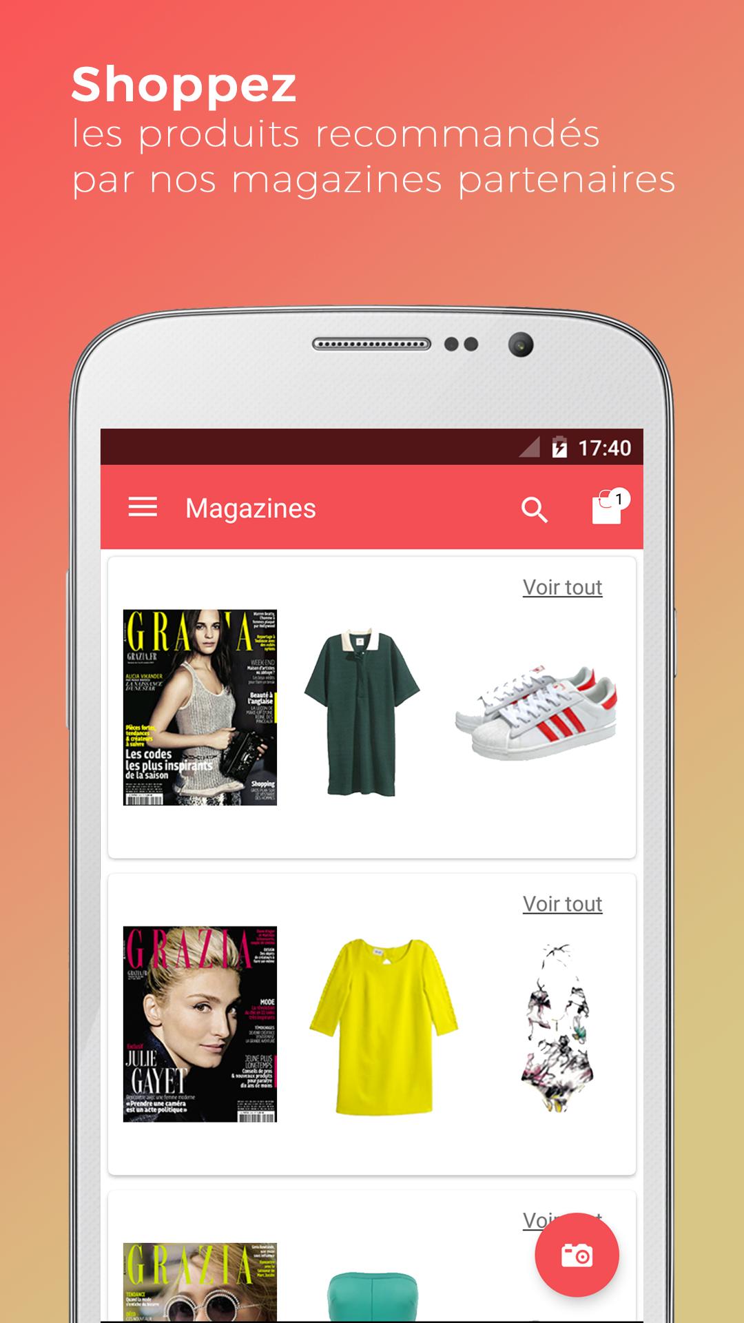 - Buy your favorite products identified in one of our 18 partner magazines (Grazia, Biba, Vital, Paulette, etc.